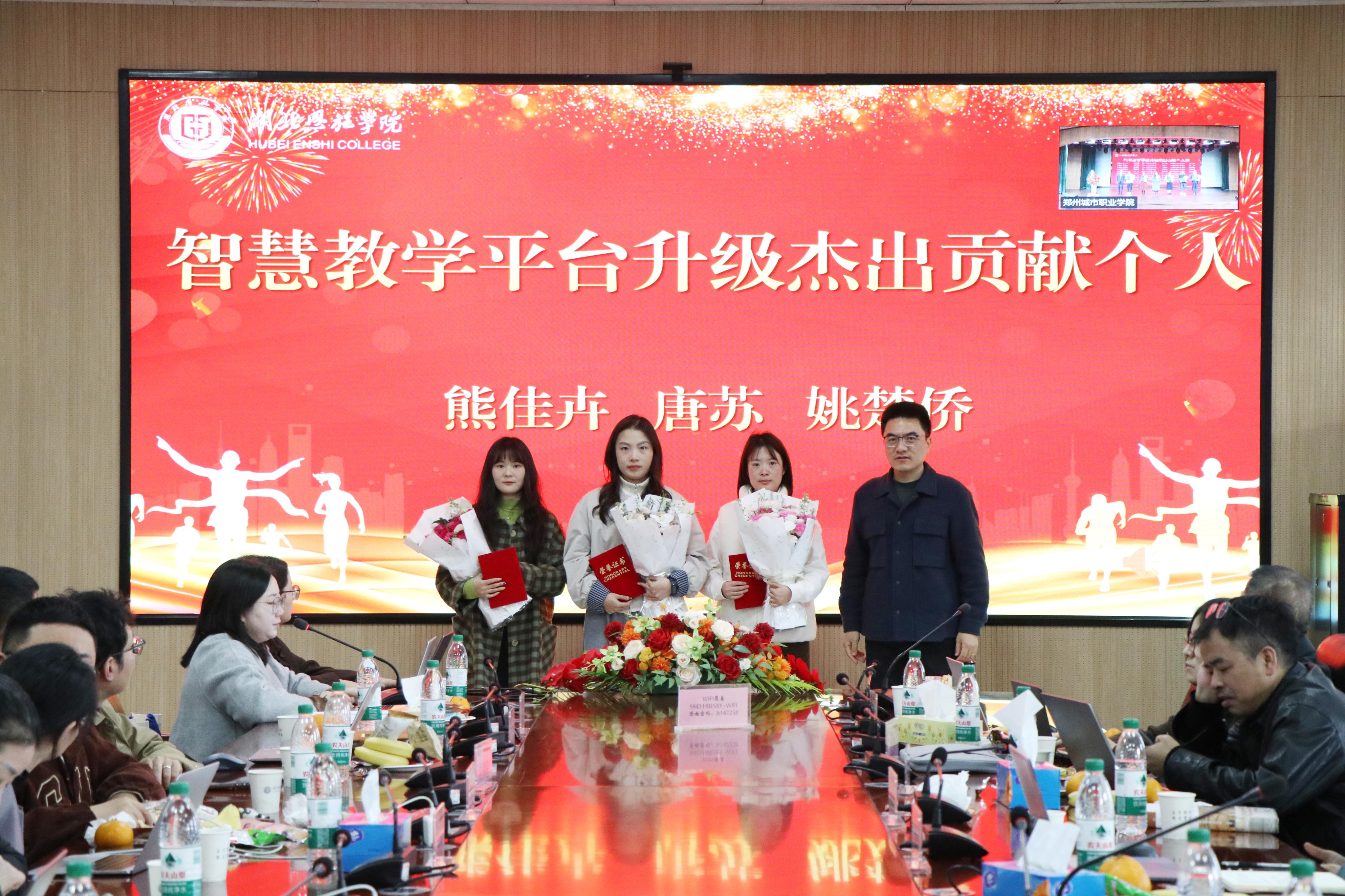 在集团主会场公布的表彰名单中,湖北恩施学院凭借就业工作的扎实成效,荣获“高质量就业单项奖”。这份荣誉既是对学校就业工作的充分认可,也是全体师生同心协力、攻坚克难的共同成果。分会场同步举行校内表彰仪式,校领导为“精彩课堂支持杰出贡献个人”欧阳娟老师、邓家兴老师,“智慧教学平台升级杰出贡献个人”熊佳卉老师、唐苏老师、姚楚侨老师,以及“教师教学竞赛支持杰出贡献个人”王静雅老师逐一颁发荣誉证书与鲜花,并合影留念。现场掌声不断,每一份荣誉都凝结着辛勤耕耘,每一次致意都传递着认可与期待。